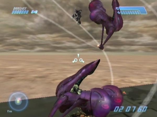 There's further fun to be had on foot, dodging the enemy or simply standing still and letting it amusingly orbit you. Also, the Banshee will chase grenades - an obvious source of comic possibility. If you tag your empty Banshee, he'll potentially barge into it, knocking it away.