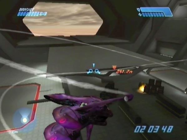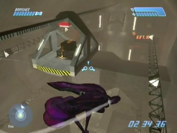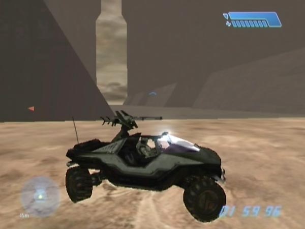 You can also drive on it and on the ship's 'floor', after blasting or pushing a Warthog down. There's a lot of driving room here! The floor makes an extremely long straight, which I used to get an accurate comparison of speeds for PAL Xbox. Verdict: the hog is about 27.5% faster than the Banshee and about 3.1 times faster than MC.