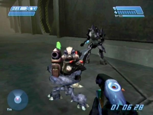 Incidentally, you can't backtrack to earlier parts of the ship. At the place where you made your recent jump in the Warthog, there's now a solid wall! Dagnabbit, I wanted to fly back!