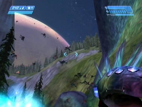 When dropship 5 comes in, be standing up on the hill directly off the ship's right side. The enemy tends to collect between a tree and a large rock, ahead of the ship's hovering position. Halo rises into the sky practically dead ahead as you eye your foe. The curve of the hill gives you some cover but the enemy does tend to open fire on you more readily than at the arc, which is the main drawback. That said, I've obtained some excellent carnage here, with large chain reactions just to the left of the rock.