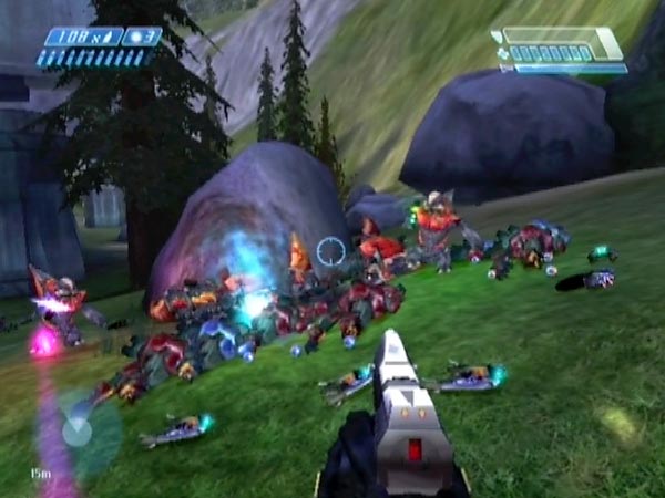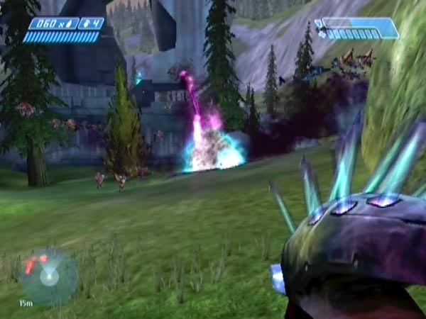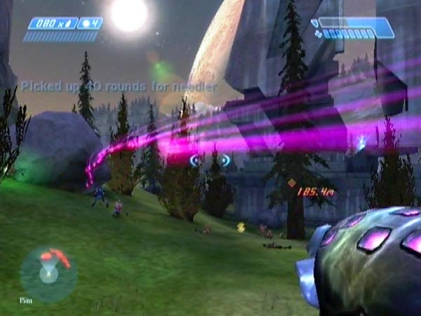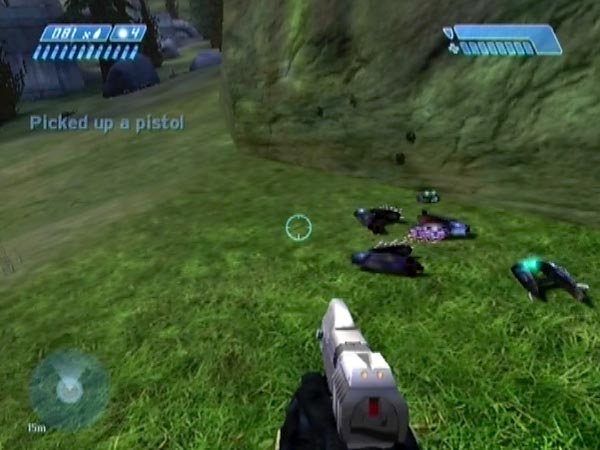 When you arrive on the scene, be fully loaded with grenades for the later fun, and bring a full pistol and full needler. You could also be bringing an extra weapon along (or even two), such as a plasma rifle on 100% charge from a Banshee pilot, or a plasma pistol on 100% from a dropship Grunt (you'll need to've killed him before he opened fire I think). It'll be a nice start for your weapon collection. Incidentally, it's a good idea to save your arrival checkpoint, in case you need to attempt the set-up work afresh.