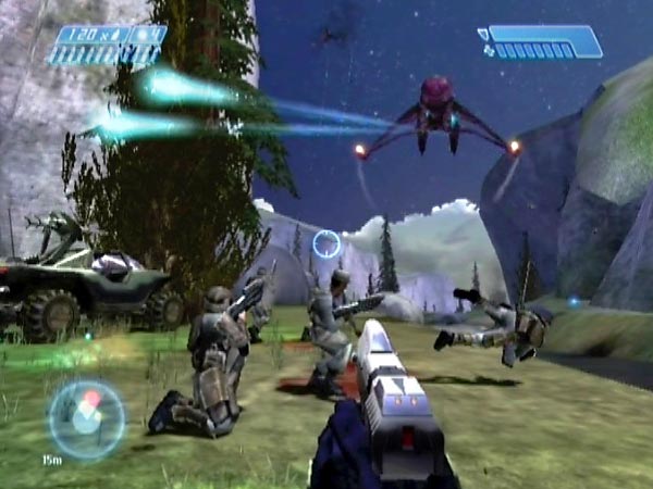 Depending on the scenery and how you arranged the Marines, you may be able to hide yourself behind a rock or tree so that as a Banshee swoops in to attack the Marines, you can pop out from hiding to give the pilot a nasty surprise, such as a vicious AR drilling at close range, or a nice sticky plasma grenade.