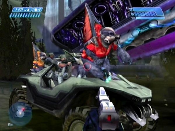 By positioning your Warthog appropriately at the drop zone, you can potentially get one or two dismounting covies to land on it, which makes an amusing sight. In particular you can get two Grunts. The position of such a covie can be adjusted by making him recoil from a shot or whack, if needed. Sadly you can't take them for a ride though; they just slide off. Grunts sometimes fall off because their on-the-spot animations make them gradually shift.