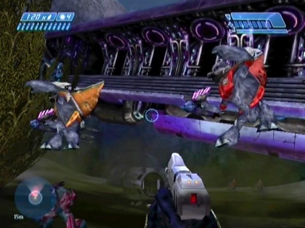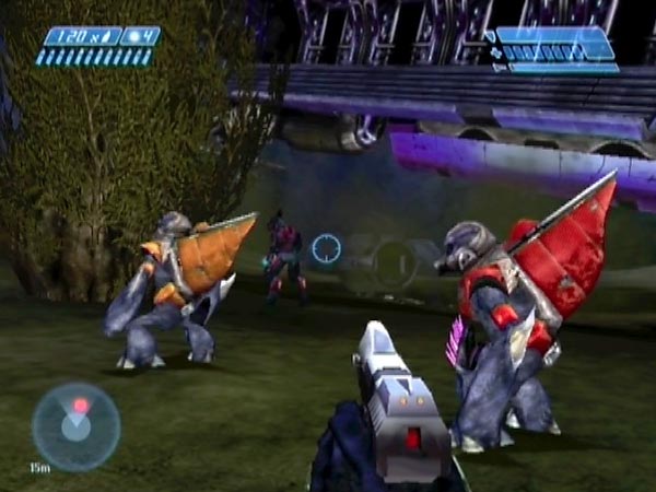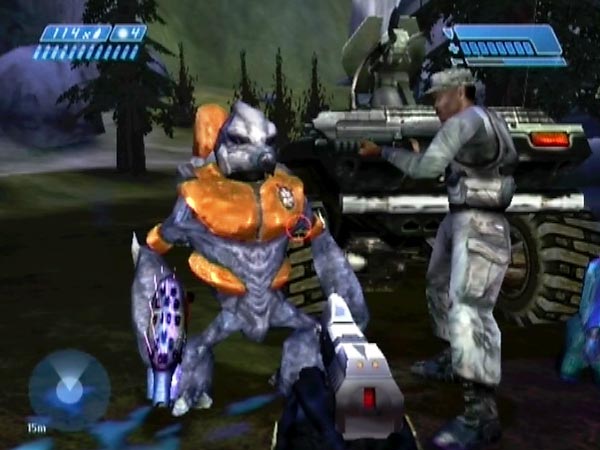 In the hillside survivor area, a covie dropship eventually brings in some reinforcements. But you can arrange for them to be strangely inactive, just standing around passively, letting you get up close and have some fun with them. Very easy too!