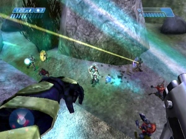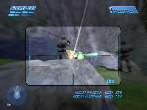 From the island, I suggest that you also take the time to use the sniper scope to simply watch Bungie's magnificent aliens attacking the Marines; particularly the Elites. If the Marines are all dead and an Elite comes over to the edge to start taking potshots at you, again use the sniper scope for a close-up look. One thing you might be interested in seeing close up is an Elite with a needler, shooting at you and reloading. With practice you can dodge the needles even whilst watching through a scope.