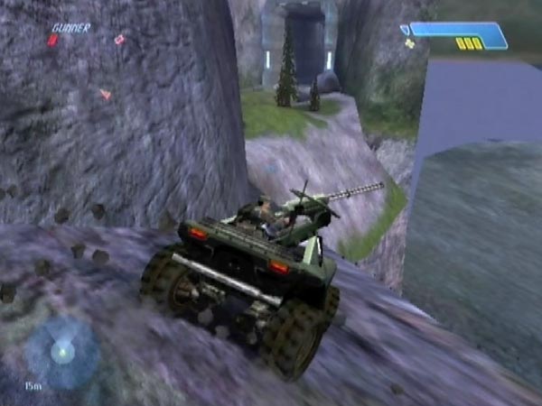 If the catapulted hog scuffs the ground, the gunner (or any passenger still aboard) can get ejected if the hog isn't upright. As with boost ejection, this can be amusing and sometimes he might survive the resulting flight. For example, it's not uncommon for him to bounce off a cliff and do some sliding before settling in the valley. You can see some entertaining examples in BCM374, devoted to the topic.