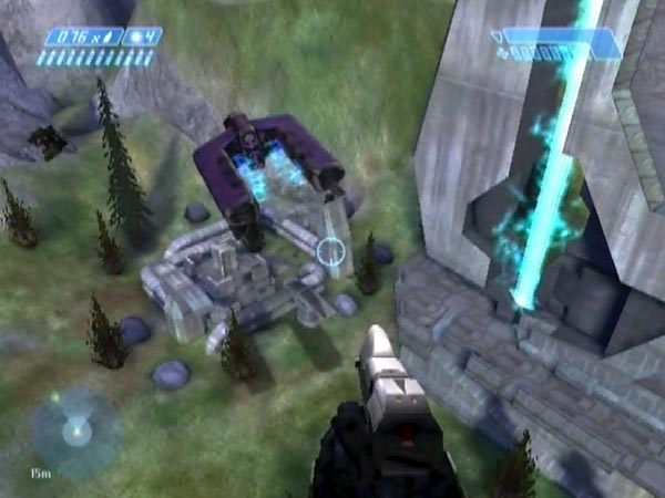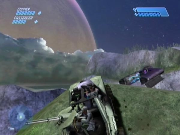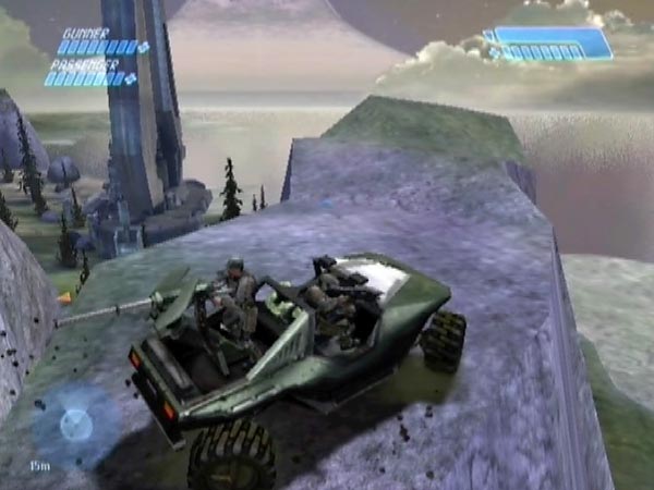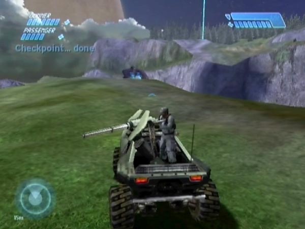 The main issue in regard to setting up is the question of how to checkpoint on the hill. My demo BCM387 uses the touchdown checkpoint for the Pelican which comes to pick up cliffside survivors after you've done your rescue work. That checkpoint is fully delayable and I recommend delaying it (with jumping) at least until Cortana has finished talking, or else you'll get repeated lines as you do your catapulting. In my demo I moreover delayed it until the Pelican was gone from view. That was partly to minimise the amount of work the Xbox has to do, and thus guard against any possible stutters in the framerate when the hog is flying through the air.