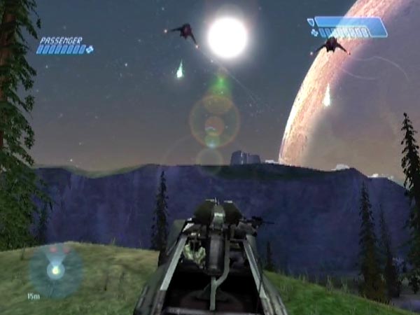 In the second part of the level, two Banshees spawn in the valley after the game deems a first survivor area dealt with. If things are set up nicely, you can potentially use their fuel rod blasts to do Warthog stunts such as front flips and back flips. What you want is one or both Banshees trying to blast you shortly after a checkpoint, ideally at a place where the terrain offers good potential for stunting. That way you can conveniently keep on reverting, trying again and again to get nicely boosted for a stunt.