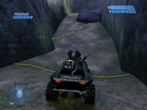 Finish off the the covie attack to get the Banshees triggered, and preferably get one or two passengers if you haven't already, because they'll add to the noise and atmosphere in your stunting fun. A sniper will make plenty of noise as he'll fire more than someone with only an AR. Stacker and Johnson are other prime options, and you could potentially have them both (it's random whether you get Stacker or Johnson in the rockslide, but you could've brought a Johnson with you from earlier in the level). Complete the initial work by getting an exit checkpoint a short way into the exit passage which leads into the valley.