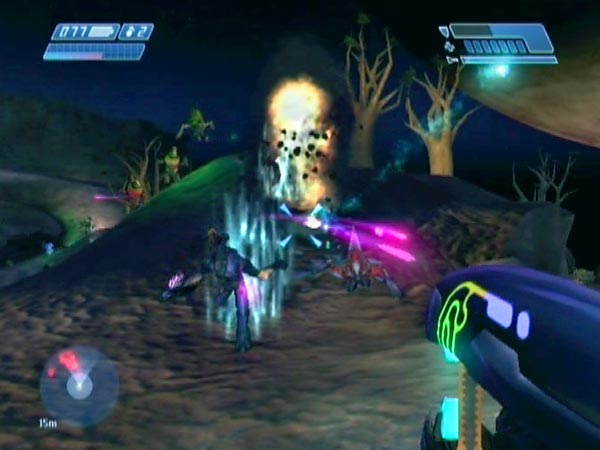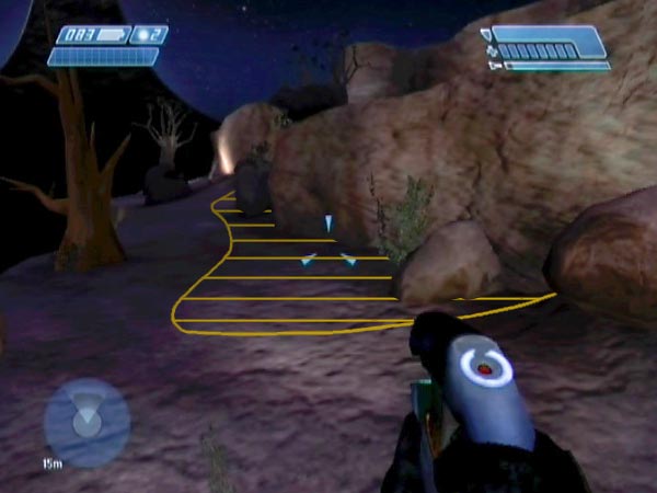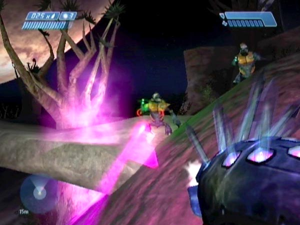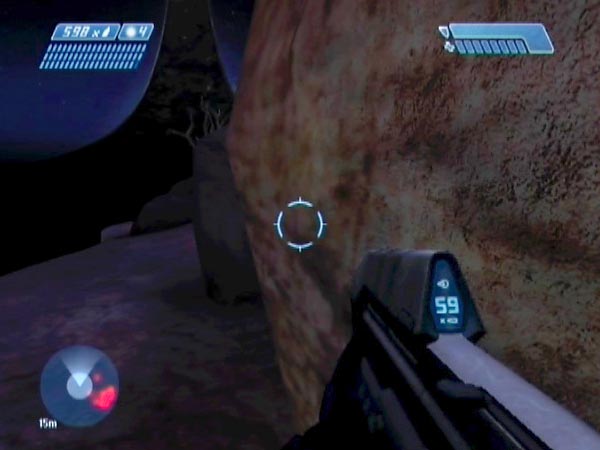 If enemies ever pass near the overhanging plates of rock close to where the active camo was, you'll often find that one or more of them will get a bit stuck there, either underneath or standing on top. Apparently they have problems negotiating that place, and in particular they don't seem to see the overhang when running up the slope, so they just run into it and try to keep going. As such, you'll probably end up having to go and kill them (as seen in BCM10). That can provide a bit of light entertainment (plasma grenades and the needler spring to mind), but I sometimes make an effort to keep enemies away from there so my battle will finish in the place where I actually stage my defence.