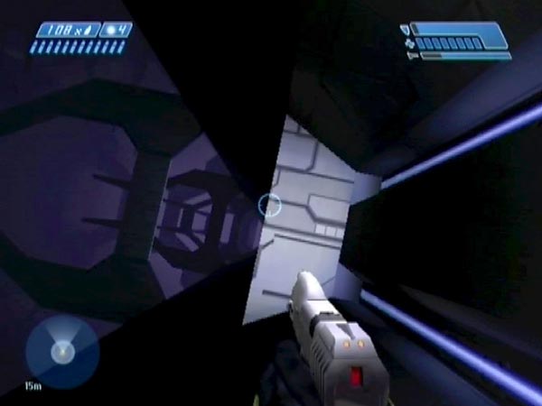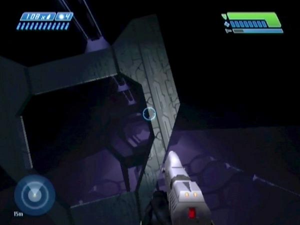 Just past the control area in the security substation, you can walk out onto a balcony and peer down into the enormous shaft. But if you have PAL Xbox you can also get down a long way quite easily with a succession of falls! Have perfect health and an overshield for this. The overshield is needed to survive the first fall.