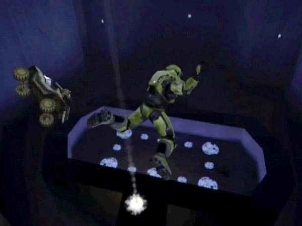 It's quite easy to squeeze a Warthog out onto the balcony and get a delayed checkpoint there, then have fun driving it off towards a platform stack, where interesting things can happen. It's good to have Marines along for the ride. They do a lot of amusing yelling and can end up ejected onto a platform or shelf. The hog can end up in amusing situations too, such as being embedded in a platform or resting on it precariously. There's lots of this in BCM368, which also outlines how you can set things up.