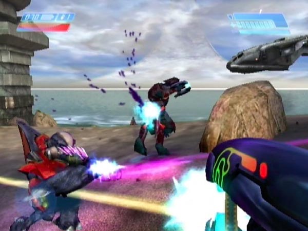 Before I get to some tactics, a few words on the opposition. Initially you're up against several Grunts who lurk near rocks to the left, centre and right, backed by an Elite in the open with a plasma rifle. This is group 1. On Legendary and Heroic the Grunts number 6 (they're in pairs), otherwise it's 8 (two on the left, three in the centre, three on the right). However, on Easy it seems that one of the centre Grunts always gets killed by AR fire from the other Pelican even before you disembark.