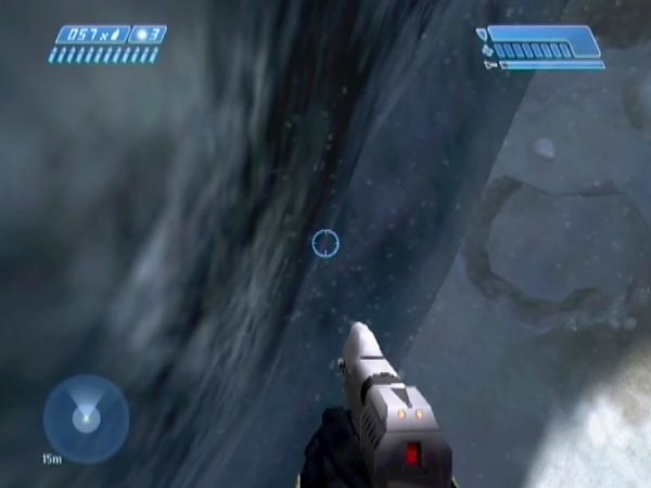 This method was first shown by xbill (using NTSC I believe). He advertised a video of it in the HBO forum on April 25th 2002, and added some explanation of his technique on May 4th (see also some later advice). The movie can currently be viewed in the Tips and Tricks section at HBO. In his movie xbill's shield doesn't even flicker when he hits the ledge. He then heads along towards the Marines to get down off the ledge. He does so at a relatively dangerous place (it's not as friendly as it looks), taking his health down to only one health bar, but this was pioneering stuff so I don't think we'll hold that against him! His descent was enthusiastically greeted, and in HBO's Tips and Tricks section the comment partly reads "…and now xbill shows that it can be done, elegantly, in single-player mode, with no explosives or fancy moves. Just do the jumps correctly".