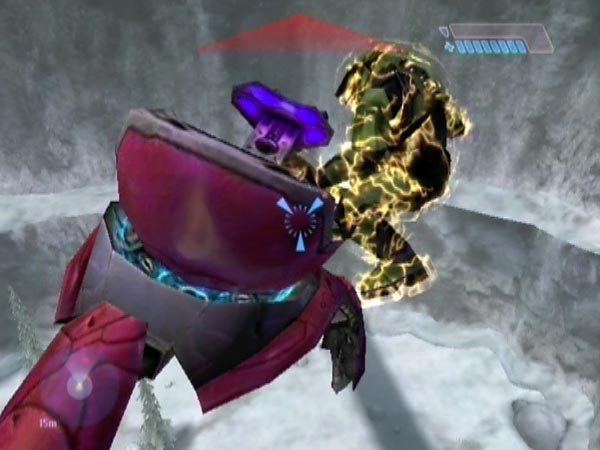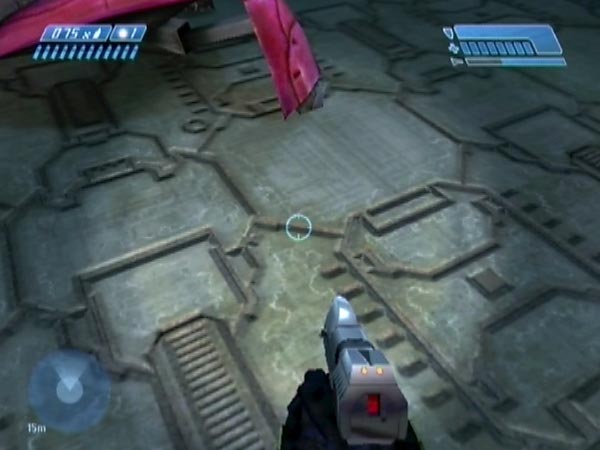 Incidentally, I'd recommend having a plasma pistol. For one thing, it's good for knocking the Shade off if you need to. It has the highest melee rate. But also, while doing this you may come under heavy fire from the Elite patrolling on the lower deck if you didn't kill him beforehand, and in that case a quick plasma ball is great for making him back off. However, I'd advise eliminating the Elite beforehand, and also any Banshee, because otherwise they can really hurt and distract you when you're on the V.
