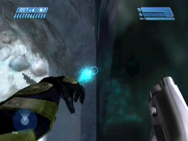 In this method you fall to the near right ledge where an exploding plasma grenade slows you up enough to let you direct yourself to where you can be cushioned below. Suitable only for NTSC/PC.