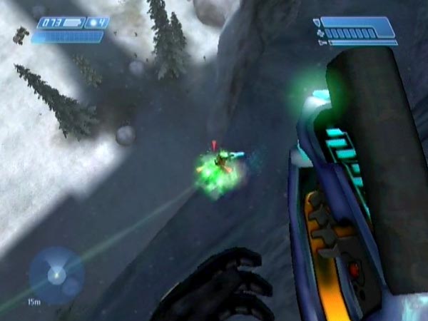 Note: If you only take a glancing deflection off the Elite and end up going off the ledge, you could still survive if you get sufficient cushioning from the cliff face, or possibly a rock. Another variation on things is that it's possible to end up stopped on the ledge by a direct collision with the Elite, rather than bouncing against him via the chevron. He can provide enough cushioning. However, survival would be very fickle.