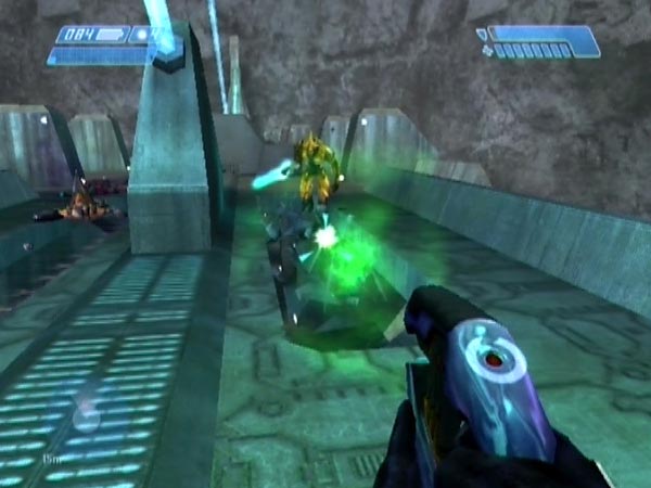 I showed my original descent with this method in BCM27, released on February 3rd 2011 and advertised in the HBO forum and also in the High Impact Halo forum. I'd had the idea of being stopped on the ledge by the gold Elite months earlier, but at that time I'd been thinking of using the far ledge. It's easy to get him onto that, by jumping onto the bridge support. If he's chasing close behind he's liable to follow and drop, ending up almost directly below. There are other ways too. Falling down to him however, I found that the collision would kill me, so it looked like the idea was no good. It was only in 2011 that I explored the potential at the near ledge, having thought that a collision after falling from the V could be survivable. In part I was prompted by having just managed FrogBlast's Shade stop method after falling from the V. After things worked with the gold Elite, I managed to get down in similar manner using a Hunter, and later using the patrolling Elite.