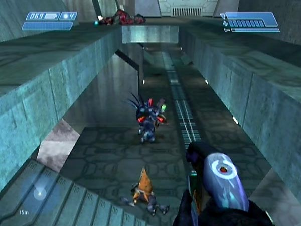 Eliminate all bridge enemies, then head into the second room and do enough killing to make things safe enough for you to then lead a Hunter out to the bridge, an easy process in which you barely need to do more than run along at slightly less that full speed with the Hunter close behind (see Hunter leading for more on the technique, and also see the commentary for BCM28).