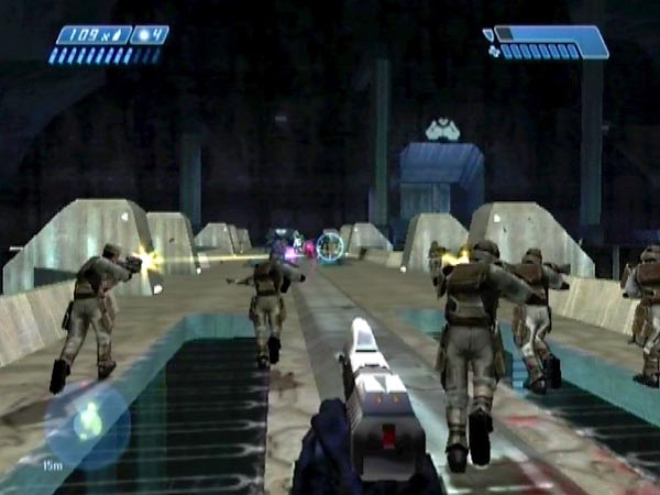 With solo battling it becomes more advisable to leave some spare weapons on the bridge, otherwise you can easily run out of firepower and find it hard to advance far enough into enemy territory to be able to pick up a dropped weapon. Then again, that problem could also be an enjoyable part of the challenge, as you'll need to pick a good moment to dash forward for a quick grab. But you can make an Elite bring a plasma rifle your way by getting him mad and letting him close in before killing him.