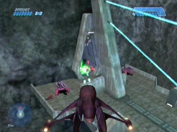 Assuming you came through the door in a manned hog, leave it there to immediately switch to your Banshee and complete your save. The passengers won't get out while you're gone. Once you've got your save, you can fly back to base, pick up a gunner in the second hog, then link up with the original. Or, fly to the manned hog, drive it back to base, then set up a gunner in the second hog. Either way, you've got two hogs waiting. If the hogs are close together, try standing between them to get the full earth-shaking experience of two chain-guns rattling away.