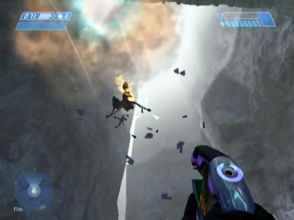 How do you get a covie down to the battlefield? Get him to the lower bridge deck and tempt him into attacking so he goes off and either bounces off the ledge or stops on it, from where you can get him the rest of the way down. On PAL Xbox he can survive all the falling. With all but the gold Elite, it's best to have him bounce off the ledge rather than stop on it, as getting him off the ledge wouldn't be easy.