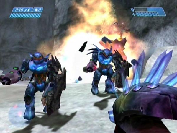 One other aspect of enemy numbers is the Elite breakdown into reds and blues. Reds are much more fearsome than blues; so the more reds you have, the tougher the battling will be. On Heroic I think the most likely outcome of the random spawning is that you'll get two of each. But if you want things tougher, keep retrying the set-up work (from the battle trigger onwards) until you happen to get three reds. Or even four, though that's very rare.
