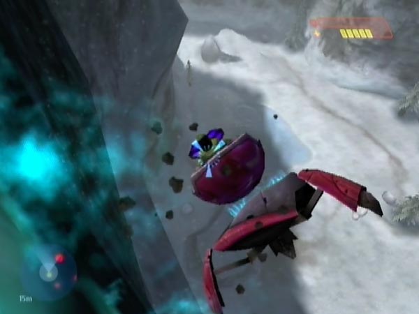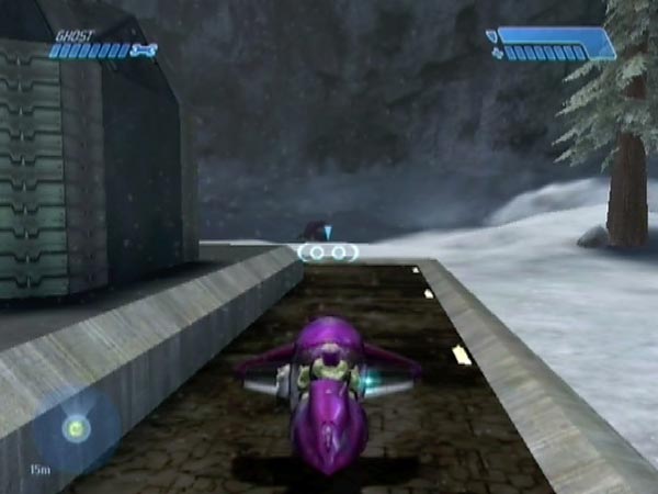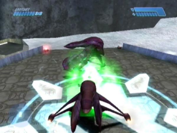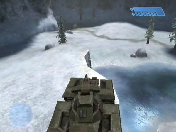 Park on the hill next to the ice patch. Facing the platform, you'll have the ice patch down to your right, and you should be backed into the corner (see pic). From here you can just see the top of the Banshee; a faint dark hump to the left of the platform's central light. The blasting procedure is likely to need multiple tries, so get a delayed checkpoint first. To do that, dismount and head off to trigger a tunnel checkpoint, and keep it delayed until back at the Scorpion. You can use the delay from a grenade throw to also get aboard and take aim, before finally getting the checkpoint.