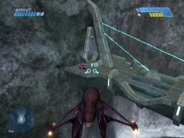 Just to mention it for completeness, it's actually possible to get the platform Banshee without using another, but it's not easy. In normal play you'd be able to get it by rocketing the platform, but there's no rocket launcher available yet, and if you try blasting the underside of the platform with a Scorpion instead, the blasts just don't seem to have an effect. However, in late October 2010 I had another go at things and found that you can get it down with the Scorpion, using the following two-stage blasting procedure.