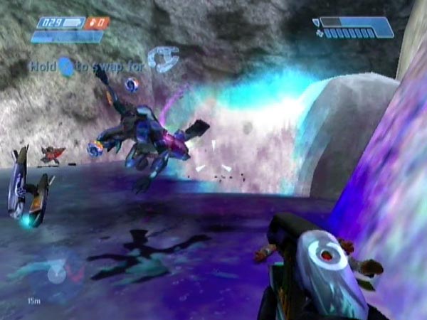 The idea here is to get aggressive and try to advance into the oncoming stream of covies, taking them down as you go, though you may sometimes be obliged to hold your position or fall back under the pressure, perhaps letting the Marines take the brunt of the enemy fire while your shield recharges. It's far more difficult than a fighting a static defence, and your shield will probably do a lot of bleeping, but it can be good fun, and it's a great option if you enjoy your melee attacks and a lot of up-close brawling.