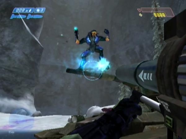 There's a bothersome issue to cope with however. A checkpoint is triggered along with the battle, but you probably don't want to get it, as you wouldn't then be able to revert to your save point. Accordingly, some checkpoint delaying is in order. You can cause an initial checkpoint delay by throwing a grenade beforehand (throw high for maximum delay), or by using Banshee fire if you're flying. Thereafter, enemy threat may soon become sufficient to continue the delay.