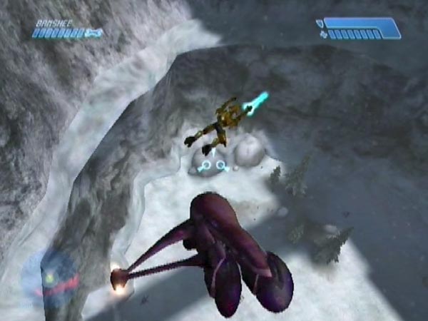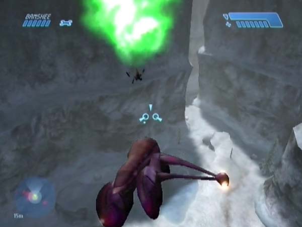 One set-up detail to add though: preferably get rid of the Shades before they get manned. That way, all Grunts will remain on foot, to be potential victims in the Shark play. The first two Shades can be grenaded off the bridge before you do the grab. The other two should be blasted off before triggering the second batch of covies, which includes two Grunts behind the wall at the far end (see pic, left).