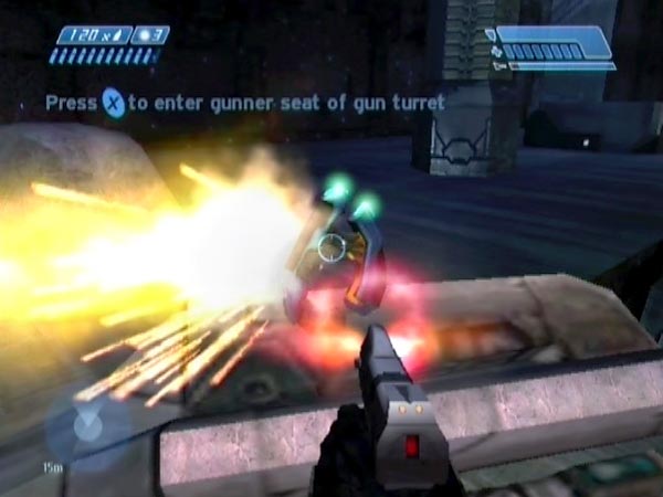Grinding is what I call it when a weapon gets slowed up from settling, making a characteristic loud grinding noise as it struggles against the scenery or whatever - usually a sloping surface. If you've played plenty of Halo you've likely noticed it at some point, because it's not that uncommon. This particular case was very unusual however, for two reasons. Firstly, I can't recall ever seeing a weapon grinding on a turret before, or indeed on anything except scenery. And secondly, it was going on and on, whereas grinding normally only lasts a few seconds.