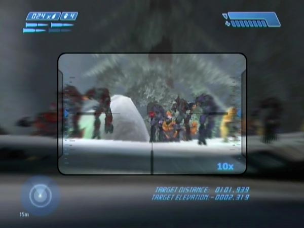 With that blockade you can defend quite nicely from on top of the huge cliffside rock where the blockade ends. Depending on the exact rock geometry (which gets randomized whenever you come across the loading point back in the tunnel), the rock may even afford you some cover. Even if it doesn't, I find that most of the enemy fire gets directed at the Marines, even though they fall back from the blockade when you're up there. It's a great spot (see pic). One of my favourite challenges is to try to take down most enemies before they even get near enough to trouble the Marines. See how well you can do, using a combination of the sniper rifle, rocket launcher and pistol.