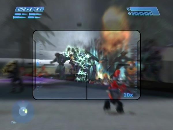 Yet another high vantage point is afforded by the front pipe going over the trough. Dropping yourself off there is fairly easy; I suggest you point the Banshee along the pipe as you land, so you're lined up. The covies tend to focus on the Marines, though you do tend to come under serious fire from enemies close to the rock below on the platform. Still, it doesn't take long to lob a few grenades down there; or clear the area with rockets.