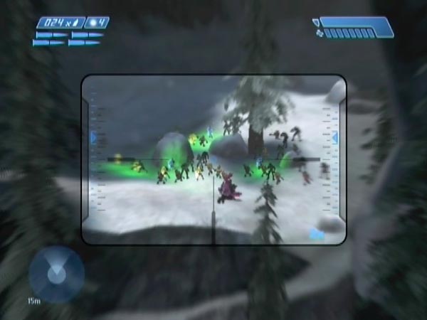 If you crouch behind a stationary shield, you can enjoy watching through it as the enemy loses track of you and Grunts go creeping around. Should be fun to lob a grenade into their midst, to wake them up a bit!