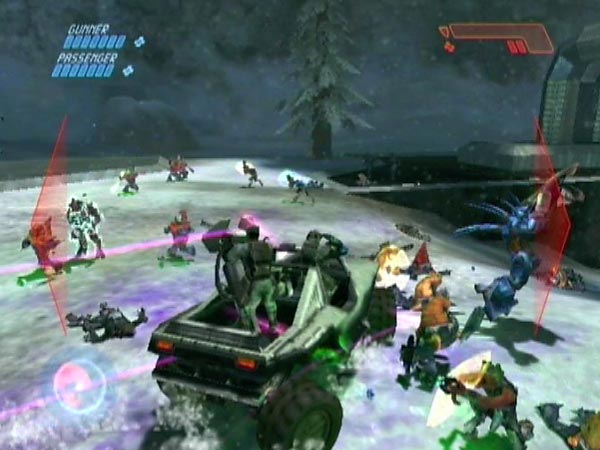 Whizz around in a Warthog, letting your passengers pepper the enemy. Maybe do a bit of squashing too! It'll take quite a while to whittle them down but I'm pretty sure you'll enjoy it. Ideally your seated passenger would be a sniper; it would be nice to have Sergeant Johnson from the Pelican area as he has great vocals. You could also have a sergeant on the chain-gun; could be Stacker, or even another Johnson! See Extra marines for some relevant info.