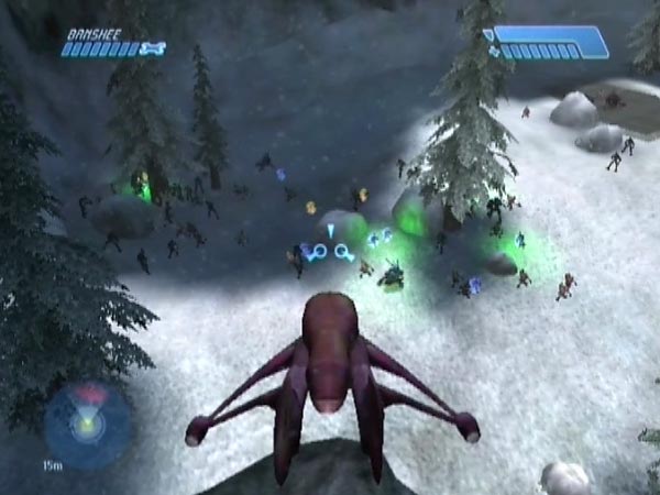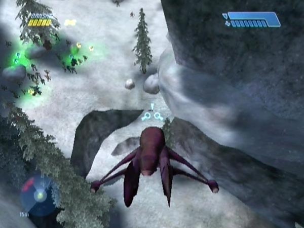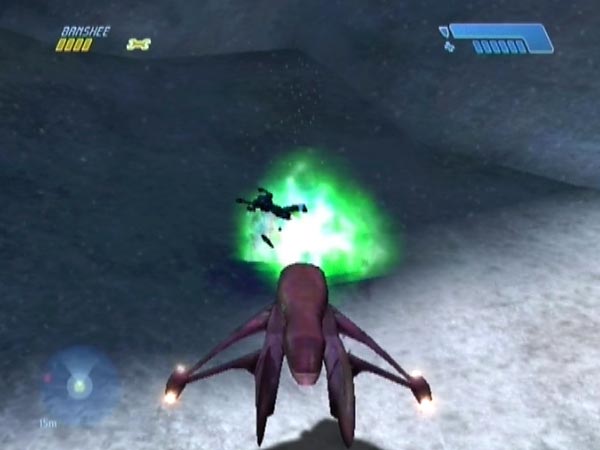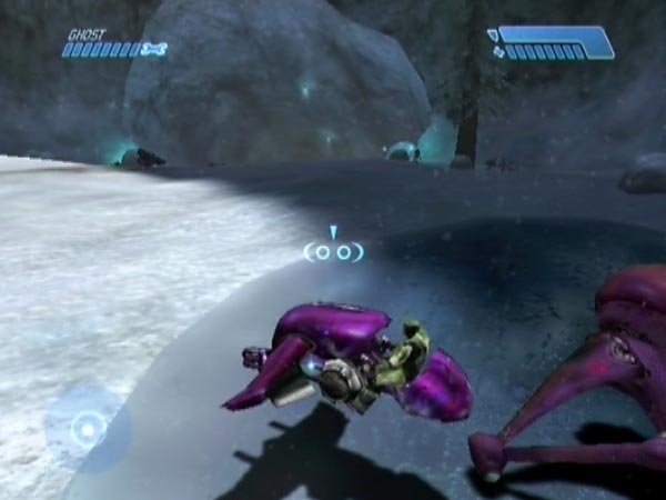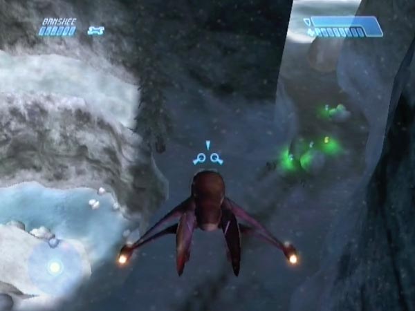On higher difficulties especially, you may be concerned about how much fire the Banshee is taking each time you make your escape out of the tunnel, though there are two fresh ones you could always take advantage of. You can vary the plan as follows. Instead of flying back down the tunnel, transfer to a Ghost and drive down in that instead, switching back to the Banshee when you re-emerge later. Done carefully, this can keep your Banshee in better health. However, you'll want to be doing the transfers well clear of the dropship troops who hang around the tunnel exit. I suggest using the Ghost which is to the left when you first exit the tunnel, but blast it onto the nearby ice patch first, or thereabouts. You can step anywhere there without fear of triggering tower enemies, and you'll also be a good way from the dropship troops.