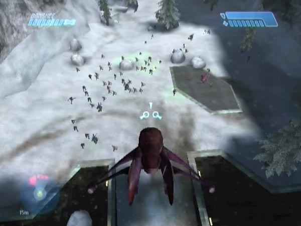 There's good comedy potential here. I get a kick out of making enemies dive clear, but you can be vicious if you prefer and try to get a few squashed. It's fun to hear the sound of enemies dying and Grunts panicking as you fly off. There's an example in BCM17.