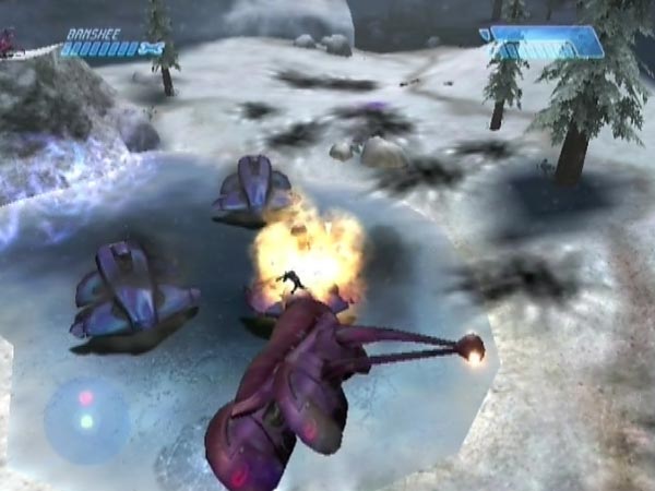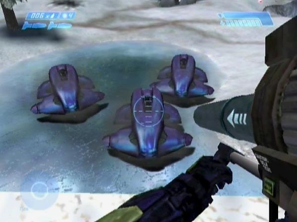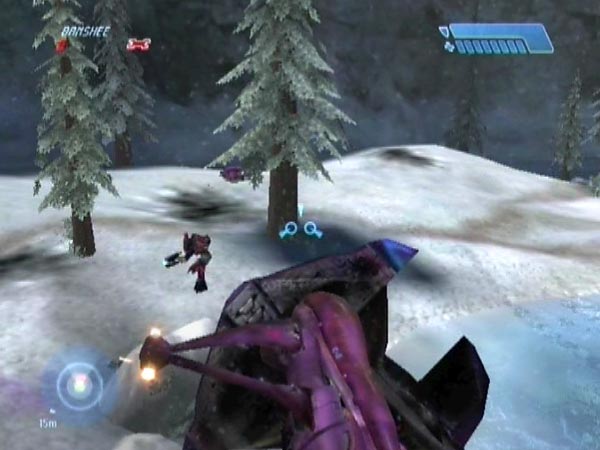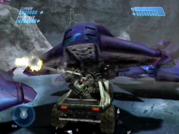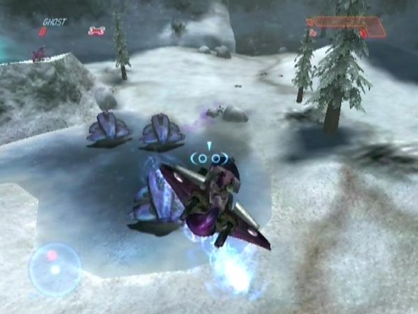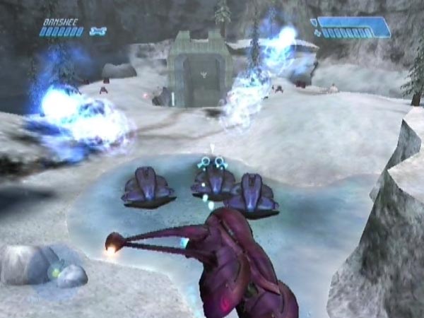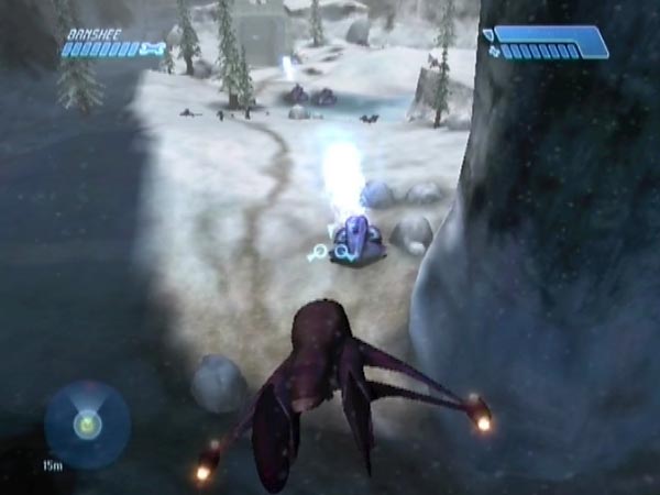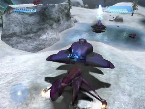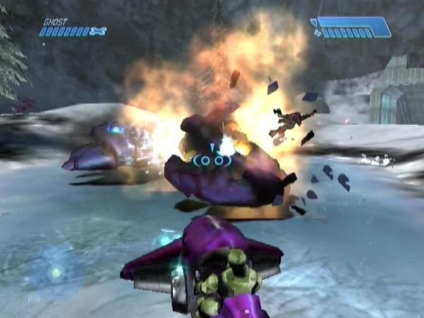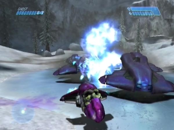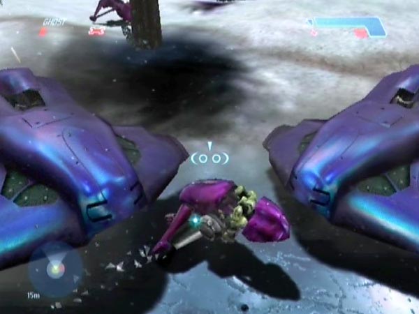There's also the possibility of whizzing around in a hog with a Marine on the chain-gun (see my Warthog joyriding article). One thing you can do there is speed onto the ice patch and barge through the Wraiths. If you drive straight into one, it goes up over the hog (see earlier pic).