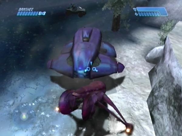 If you descend off the level's first bridge, you can fetch the twin bridges Banshee and blast the platform Banshee down. One of these can be reserved as a new Banshee to use for fun after getting your Wraiths together, and the other could be used to ease the main set-up work. See Rearranging the furniture if you're not familiar with what I'm talking about. There are a few other things you could do as well. For example you could overturn the two Ghosts which normally attack in the crashed Pelican area, and you could move a Ghost to a place where it'll be handy for later fun with the Wraiths. The Scorpion too.