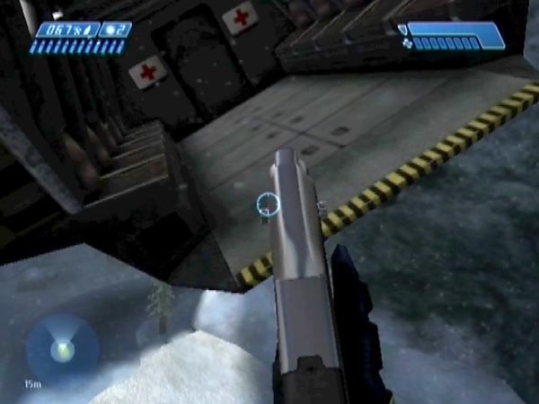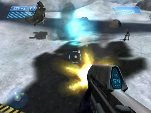 While aboard the Pelican you can have fun firing weapons and throwing grenades - and all ordnance is able to pass through the Pelican. One fun thing to do is fire at the ground when the Pelican departs and is still quite low. In particular, shooting at the Pelican's shadow acccentuates the impact effects. Looks nice with an AR or pistol, and also a plasma rifle (which gives big dark blue spots). The plasma pistol has relatively low shot speed and can't maintain high rate of fire for long, so isn't very good for shadow shooting.