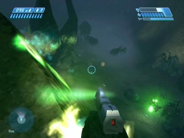 Another thing you can do with these guys is backtrack to them after dropping down to get the active camo not far from where the Pelican settles. When you pass a certain line close to the covies, they're triggered into panic, which is a nice time to have fun launching them with tags if you're a bad cyborg like me (see the last part of BCM258). A checkpoint is triggered too, though it can get delayed by enemy threat.