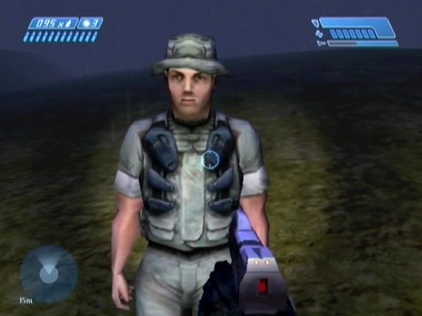 Not far from where you'd overlook the early covies, you can find a mysterious weaponless Marine. Perhaps Bungie put him there deliberately for fun, knowing that it was possible for you to reach this high ground? He's just standing still, but will protest if you shoot him.