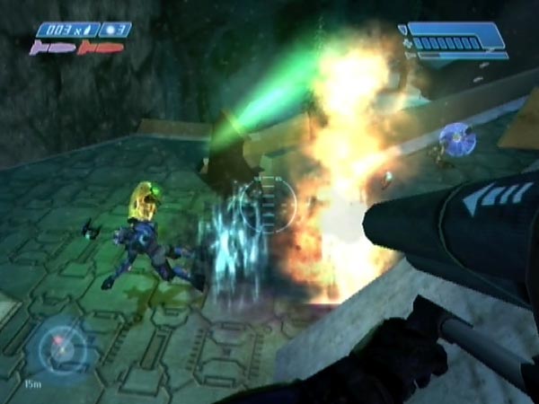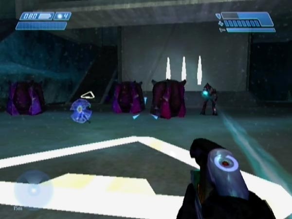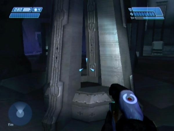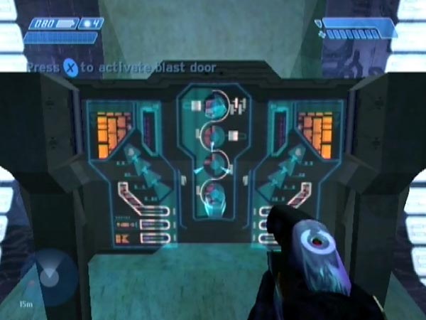 To resume normal play (or relatively normal play), go to the panel and press X again. Grunts will finally spawn near the door. As long as the first covie group (mentioned earlier) has been wiped out, a checkpoint will be triggered with this spawning, and despite the nearby Grunts, you'll be able to get it by hiding behind the nearby stationary shield for example.