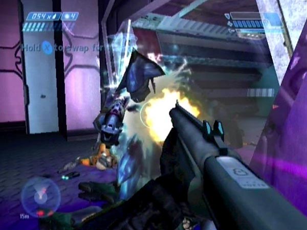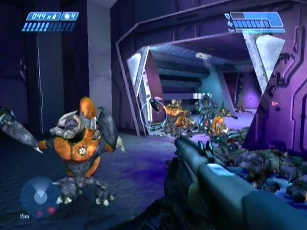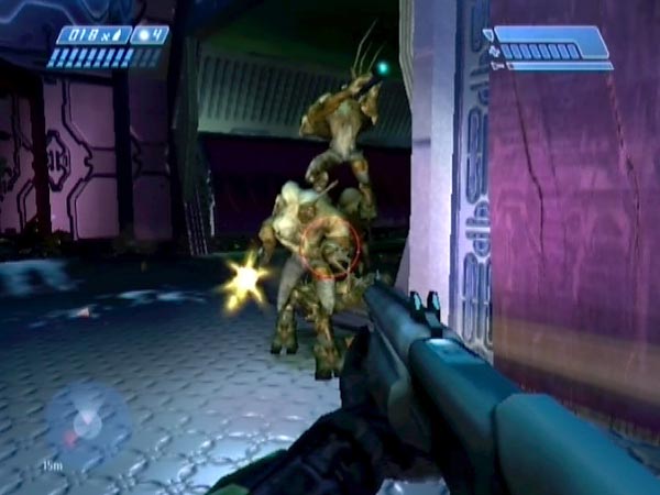 If you watch your motion tracker, you can anticipate when an enemy is nearing the exit; and from the speed you can even tell when it's an Elite. At that point, it's fun to briefly take a step in and let 'em have it. Feels good, and boy do they get a shock.