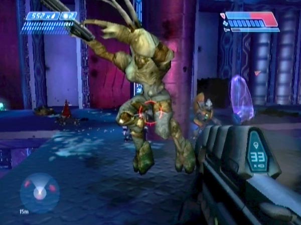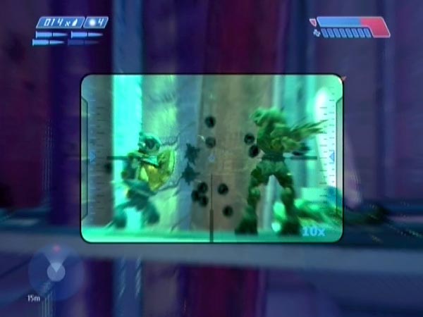 Talking of purple boxes, there are quite a few of them around the action area. Instead of using them for cover, try jumping up on top to see if you can survive from there. Not a great idea on Heroic, but it can be fun on Normal or Easy.