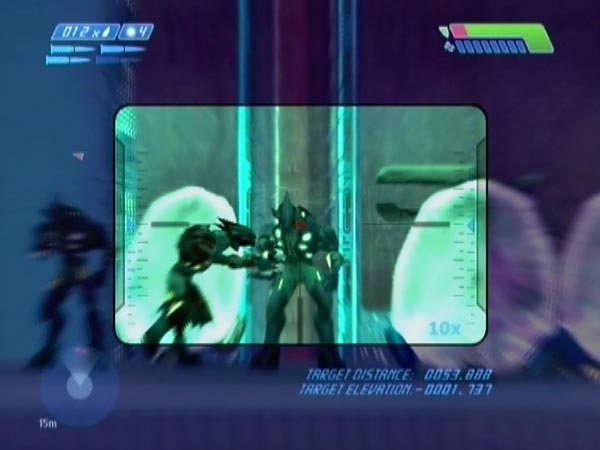 There's a handy checkpoint as you approach the hangar, making it easy to revert and play things all over again (bearing in mind that as long as you don't go into the exit passage or too far into the near passage, you won't trigger a new checkpoint). Also it's possible to have extra weapons nearby, allowing you to choose your combo each time you head into battle. You can also have an undamaged overshield, and you can even arrange to fight without music if you want.