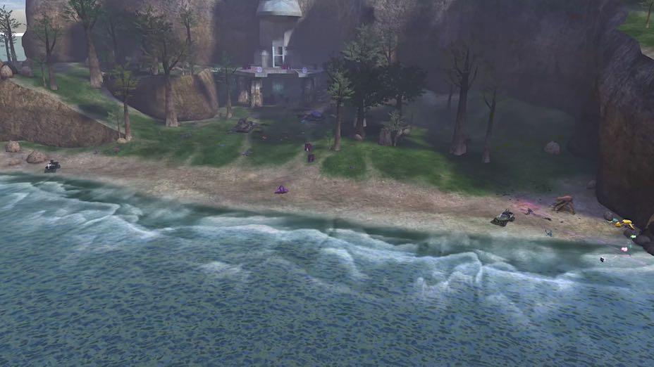 Rockslide was the first map developed, in part because an unnamed someone would probably have never spoken to me again if I didn't try. [Ed. I have spent a fair bit of time in the rockslide area, I admit.] While I can't pretend to've fought in the area to the degree that some have, it was always a location I found interesting going back to when I first played CE. The many ways you can navigate the rockslide area make it a unique environment. Another benefit was that Bungie had already created dropship animations for the area, which I was able to repurpose to replicate the traditional Firefight experience.