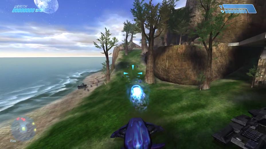 There was also quite a bit of work done in standardising the HUD. While not usable by default, the original Wraith uses the rocket launcher reticle. As with the FRG, converting a more suitable reticle from elsewhere in the collection was quickly decided on as this looked far better. The HUD elements in the original files also lacked a health bar for the Wraith, so this was added by taking the existing HUD for Covenant vehicles and tweaking it.